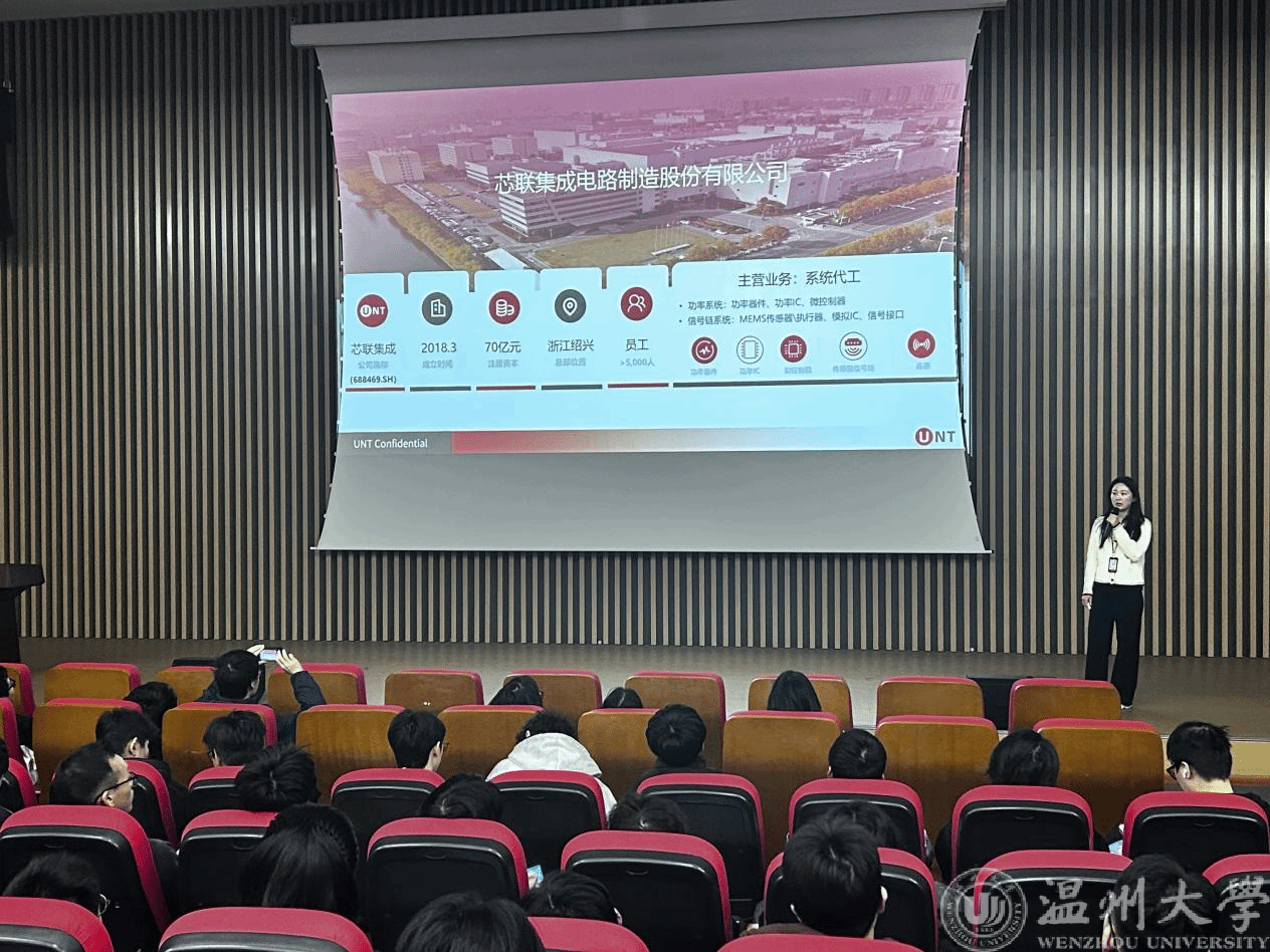 21日上午,学子们到达绍兴市的芯联集成电路制造股份有限公司(简称芯联集成)。芯联集成专注于功率半导体、传感信号链及连接领域的一站式系统代工解决方案,其业务以晶圆代工为基础,向下延伸至模组封装,覆盖全球市场,在中国、日本及欧洲设有多个销售与市场分支机构。交流座谈会中,人力资源部王女士的分享让学子们对职业发展方向有了清晰认知。当被问到“电气专业学生如何对接半导体行业需求”时,工程师结合芯联的人才招聘标准给出了具体答案:“我们急需掌握电力电子、自动控制核心知识,同时了解半导体设备电力驱动、功率芯片应用逻辑的复合型人才。