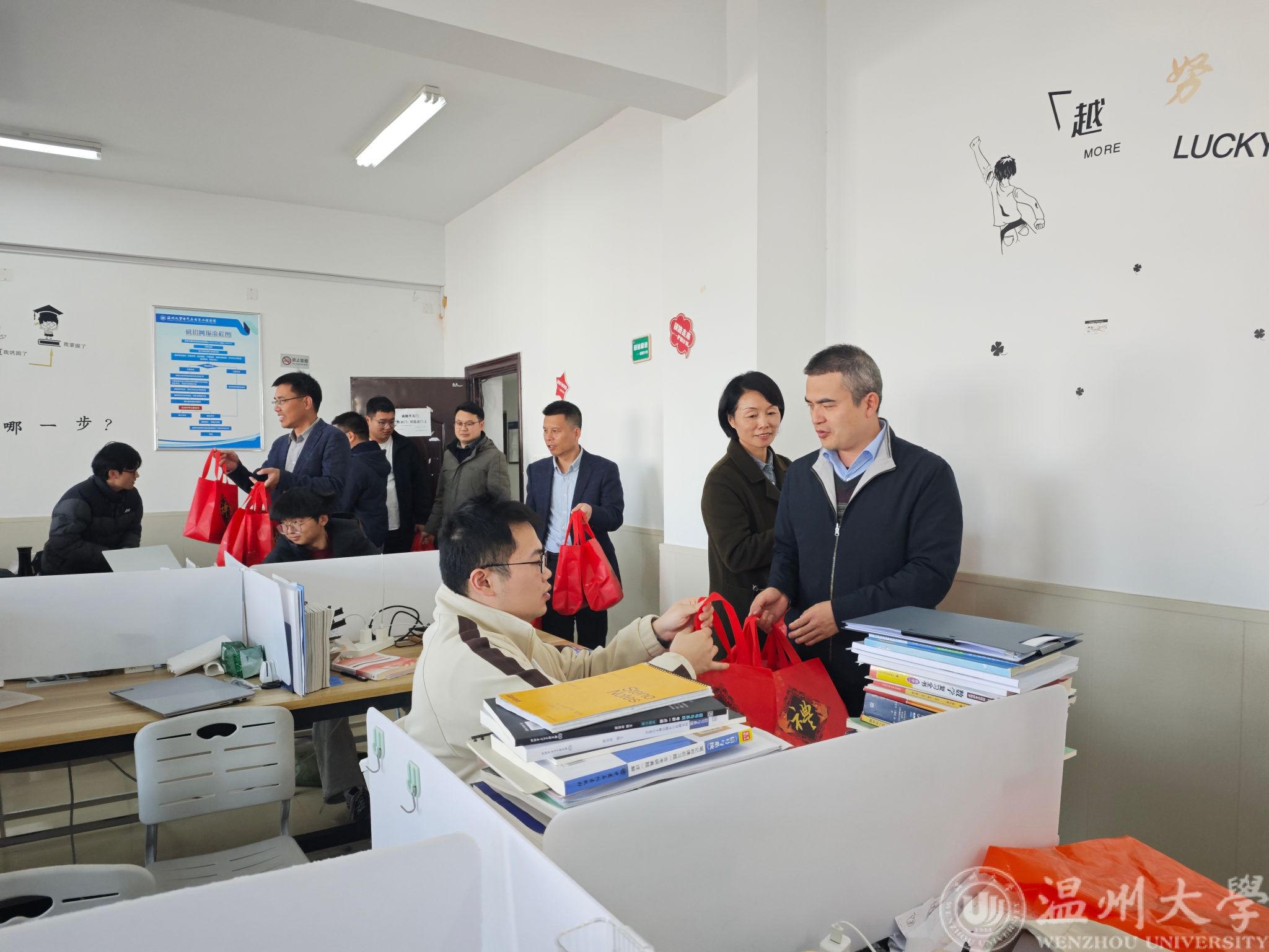 距离2026年全国研究生入学考试仅剩5天,备考学子已进入最后的冲刺阶段。为提振学生备考信心,传递学院温暖关怀,2025年12月16日中午,学院党委书记陈文远、副院长舒亮和全体班子成员及辅导员代表深入学院316、318考研自习室,亲切看望奋战在“研”线的2026届学子,并送上暖心祝福与坚实支持。