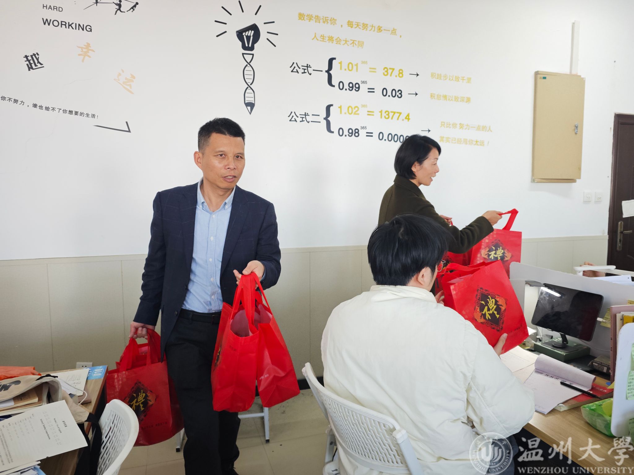 活动现场,老师们向同学们送上精心准备的“考研大礼包”,内含考研文具、暖宝宝等实用物品,以及充饥的小点心,每一份都饱含着学院的牵挂与祝福。一句句叮咛、一个个微笑,让冬日的自习室洋溢着融融暖意。