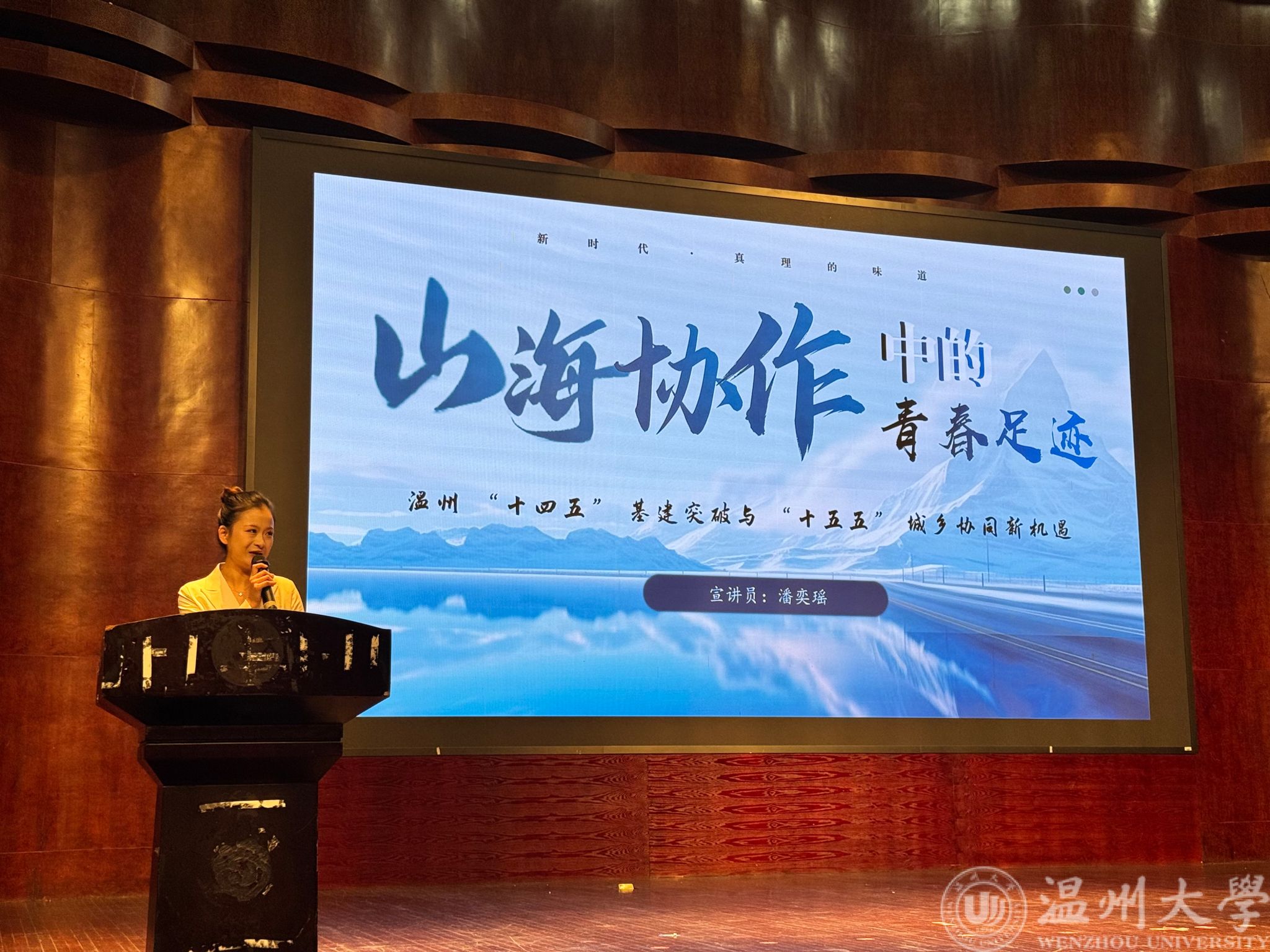 教育学院潘奕瑶同学聚焦《山海协作中的青春足迹:温州“十四五”基建突破与“十五五”城乡协同新机遇》。她以详实的案例,串联起温州基础设施建设的成就与未来城乡协同发展的前景,为青年学子指明了一条扎根温州、在山海之间实现价值的现实路径。