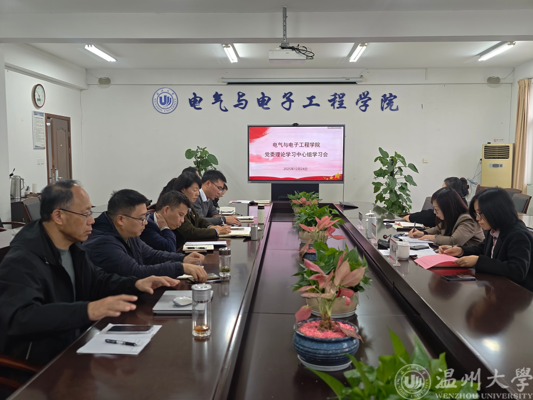 12月24日下午,电气与电子工程学院党委理论学习中心组在1A-502会议室召开专题学习会,深入学习贯彻习近平法治思想。温州大学党委委员、宣传部部长、教师工作部部长吴静一行到会巡听旁听,学院党政班子成员、党委委员、专职组织员参会。会议由学院党委书记主持。