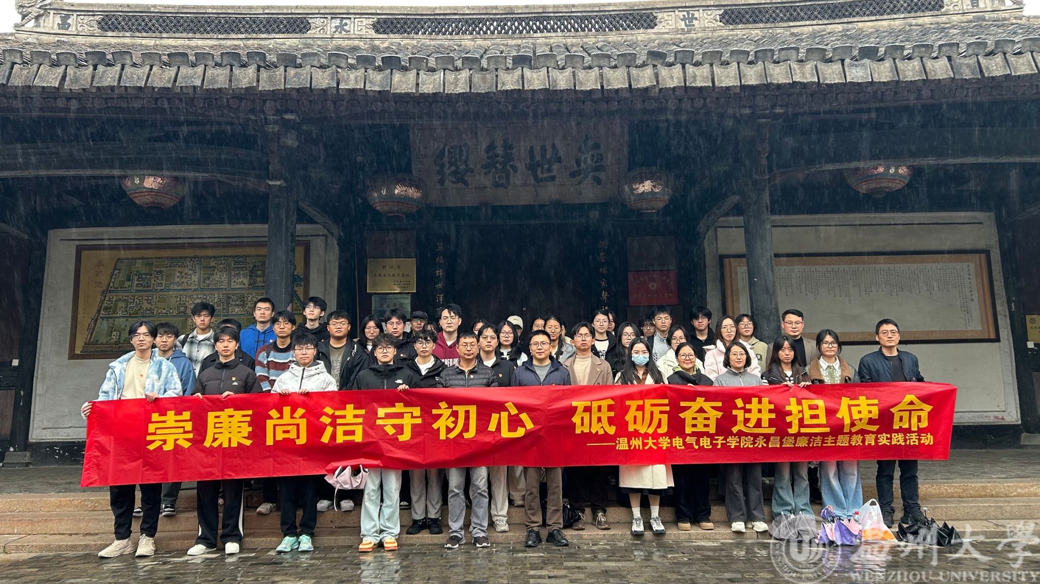 细雨浸润着永昌古堡的青砖黛瓦,一场别开生面的廉洁党课正在这里展开。近日,温州大学电气与电子工程学院组织学院纪委委员、行政教工党支部党员、新发展党员及预备党员共赴温州龙湾永昌堡,开展“师生共上一堂廉洁党课”主题教育活动。此次活动以“实地研学+专题授课”的创新形式,构建“教工引领、学生紧跟、师生共学”的廉洁教育新格局。
