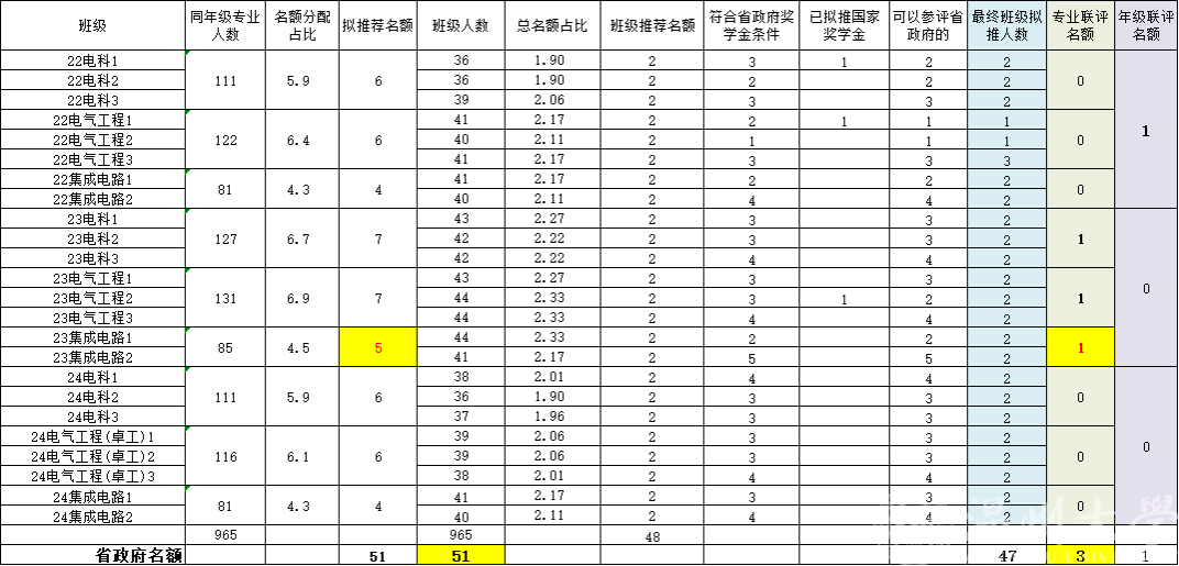 经学院积极争取,我院新增1个学院推荐名额。按照班级人数分配总的省政府奖学金名额后,新增名额面向2023级集成专业中符合基本条件(学业成绩与综合测评均位列专业前15%)的同学进行联评。