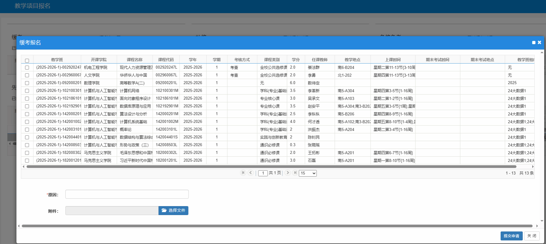功能路径:报名申请-教学项目报名-缓考