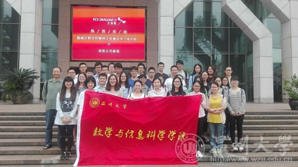 为提高学生的创新意识,开拓视野,充分自身,增强社会实践能力。2016年6月3日下午,数学与信息科学学院13统计班在学院党总支副书记赵崇峰老师和实验设计黎祥君老师的带领下,前往红蜻蜓集团参观以及感受企业文化。