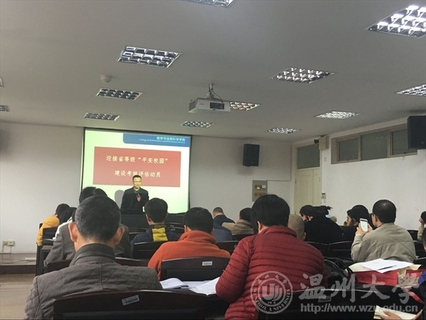 会上,全力书记强调,建设平安校园是维护校园及周边和谐稳定,加强师生文明修身活动,切实维护学校的正常教学、科研和生活秩序,营造安全、稳定、文明、和谐的育人环境,不断改善学校环境,力争在这次评估中取得优秀的成绩。之后,全书记就平安校园的具体工作做了全面的部署。接着赵崇峰副书记就相关创建文明学生寝室等工作作了布置,希望寝室导师在关注学生生活学习的同时,也加强学生的安全意识,让学生意识到各种安全隐患,并做好及时的对应措施。最后,每位老师都认真阅读学习了温州大学“等级平安校园”考评应知应会资料。